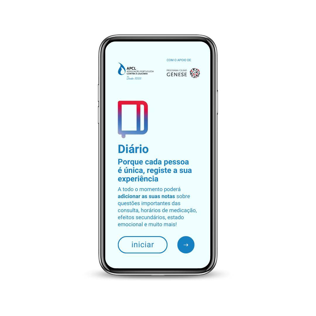 A app permite adicionar sintomas e efeitos secundários na secção correspondente. Estes sintomas irão aparecer por ordem cronológica no diário e, alguns deles, irão criar gráficos de evolução.